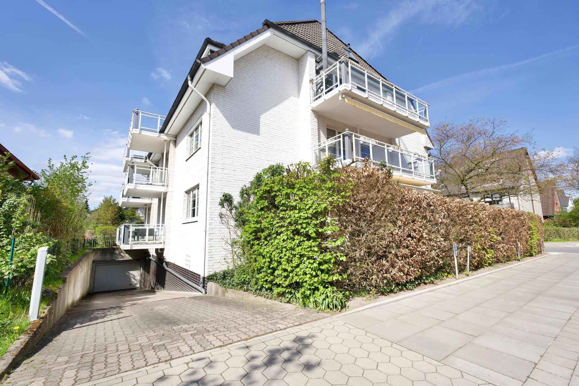 Das Highlight dieser schönen Wohnung ist die große und von der Straße aus uneinsehbare Loggia, welche von einer Buchenhecke umrandet ist.