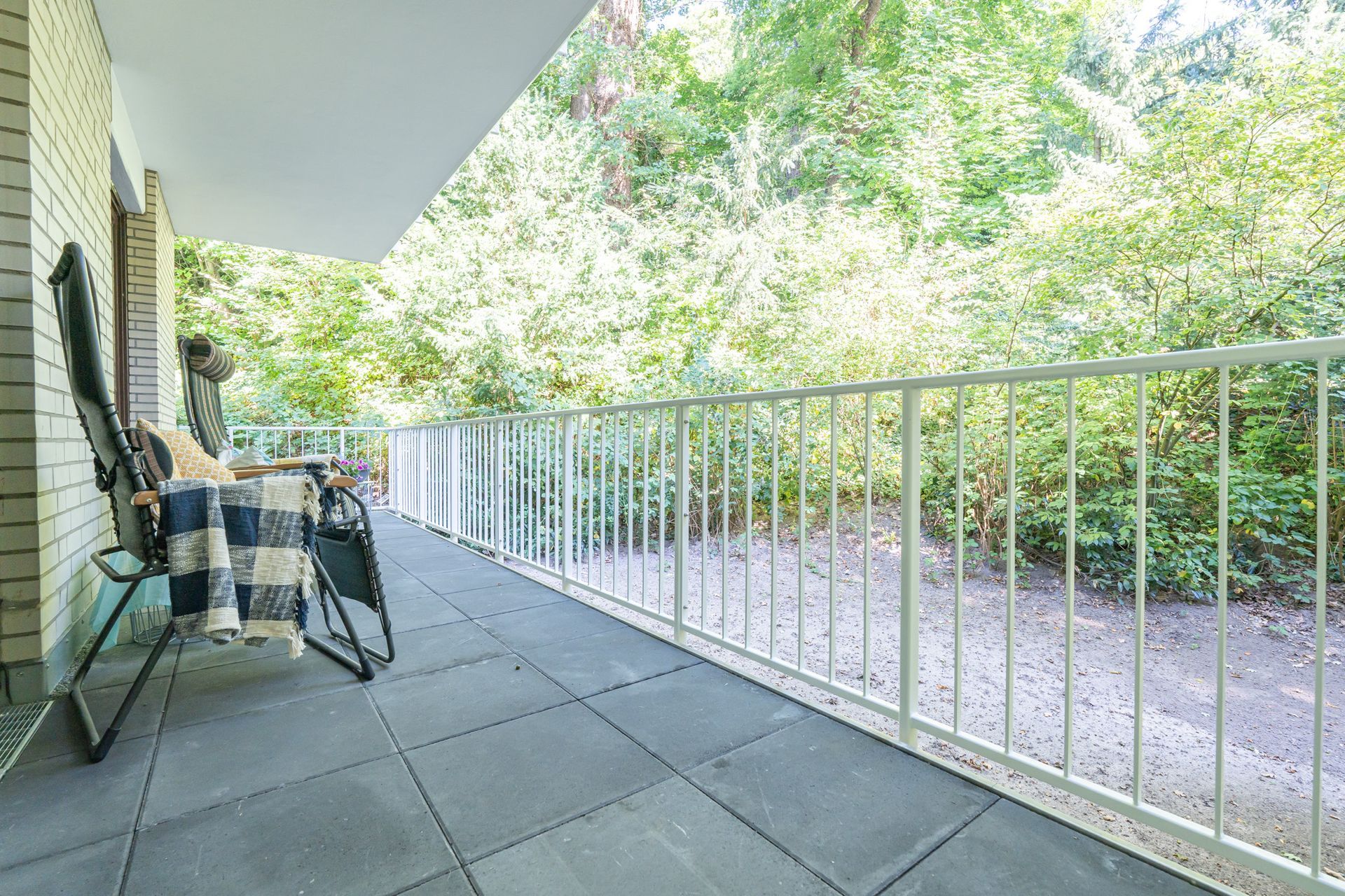 Die weiße Einbauküche mit Backofen, Mikrowelle und Induktionskochfeld bietet viel Platz und führt auf einen Balkon mit Hanglage, perfekt für gemütliche Cafémomente oder ein entspanntes Frühstück.