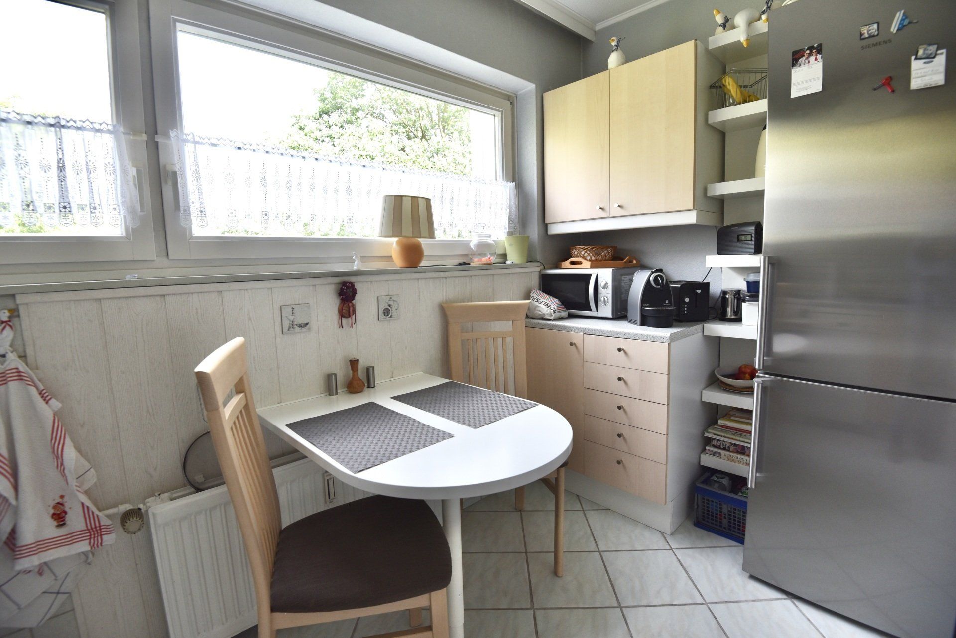 In der Küche gibt es ebenfalls die Möglichkeit eine Sitzgelegenheit zu stellen. Die Wohnung erhält eine neue Einbauküche mit Elektrogeräten.
