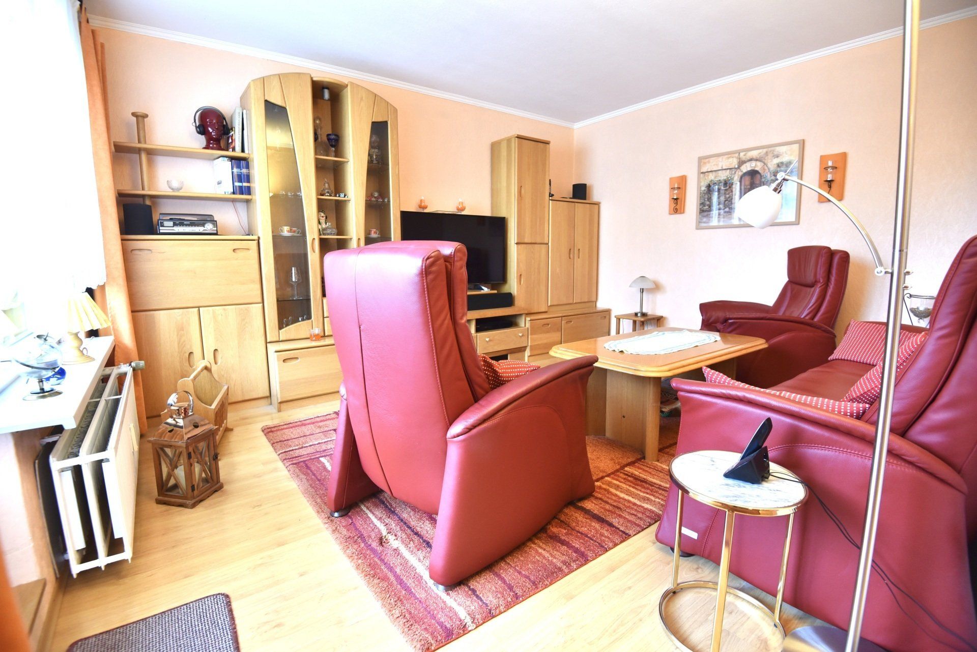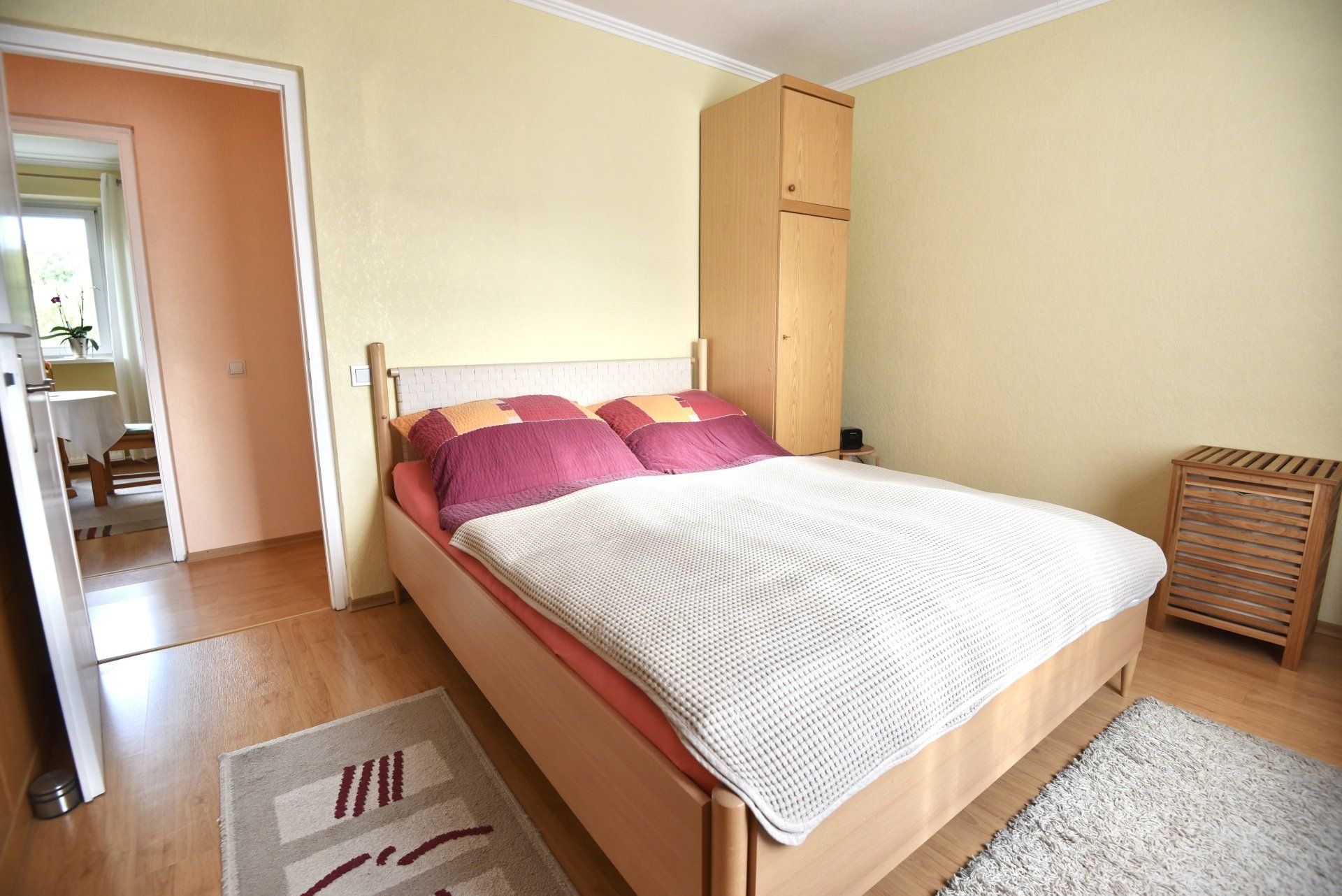 Zu der Wohnung gehören ein Kellerraum, ein PKW-Aussenstellplatz und ein sonniger Balkon mit Südausrichtung.