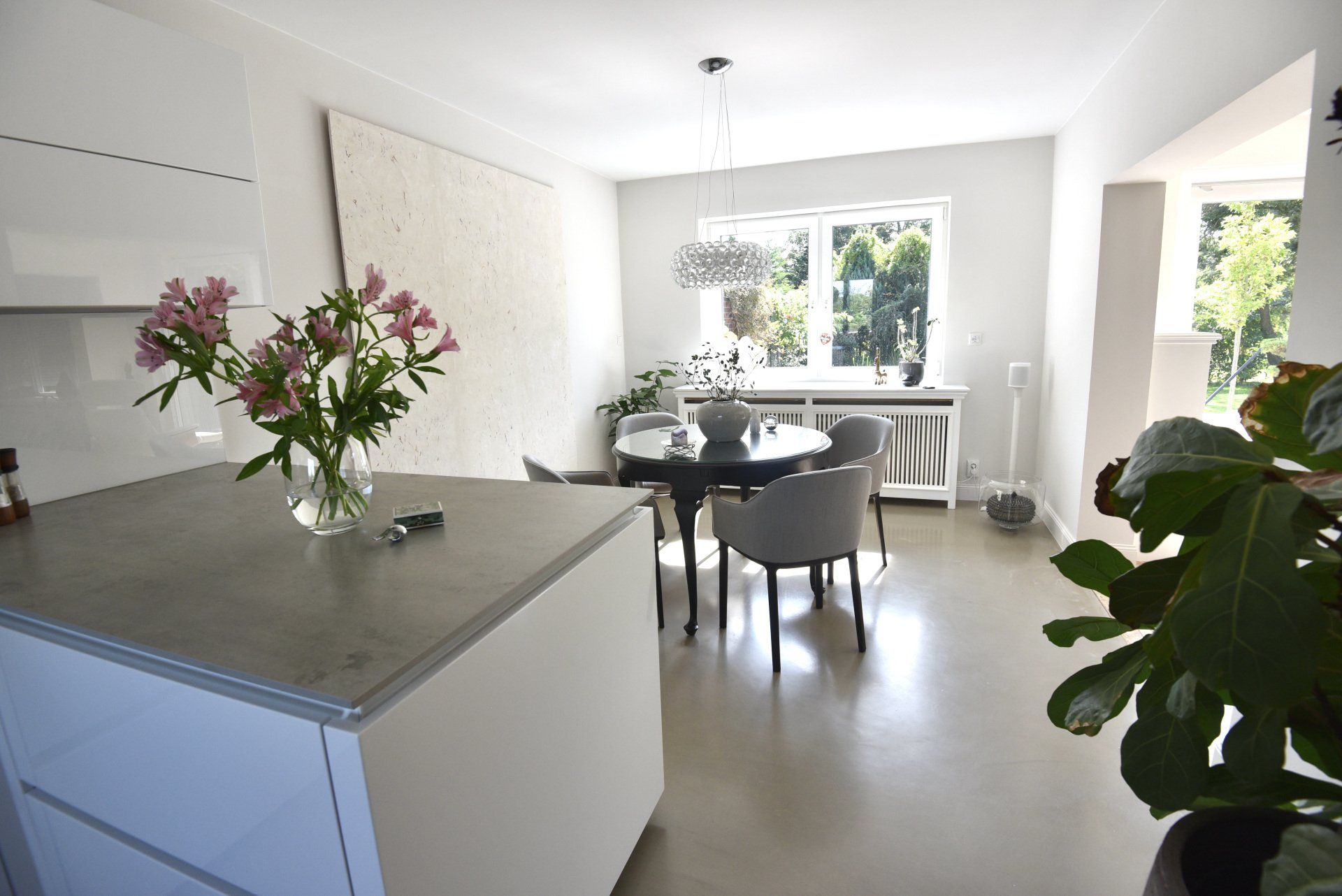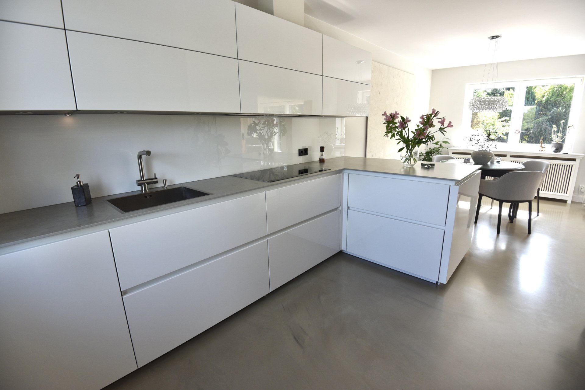 Der Fußboden in der Küche ist handgearbeitet, wurde gegossen und besteht aus Sichtbeton.