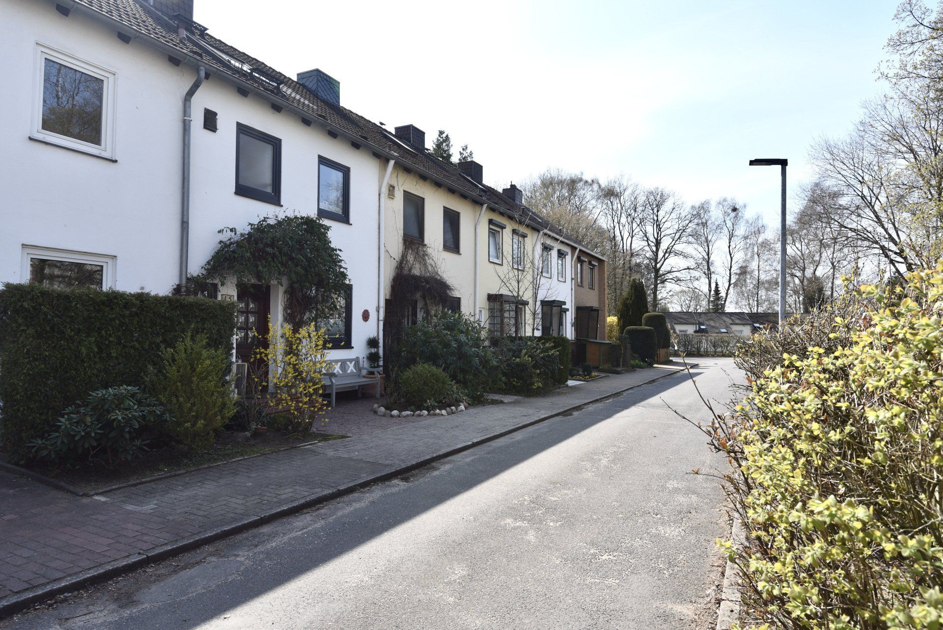 Das Mittelreihenhaus verfügt über eine klassische Raumaufteilung. Im Erdgeschoss befinden sich ein Windfang mit einem hell gefliesten Gäste-WC. Die Küche ist durch das große Fenster gut belichtet und bietet Platz für eine Sitz- und Essgelegenheit. Das Wohnzimmer verfügt über einen Kaminanschluss und ist mit Laminatfußboden versehen. Über eine Schiebetür gelang man auf die nach Süden ausgerichtete Terrasse.