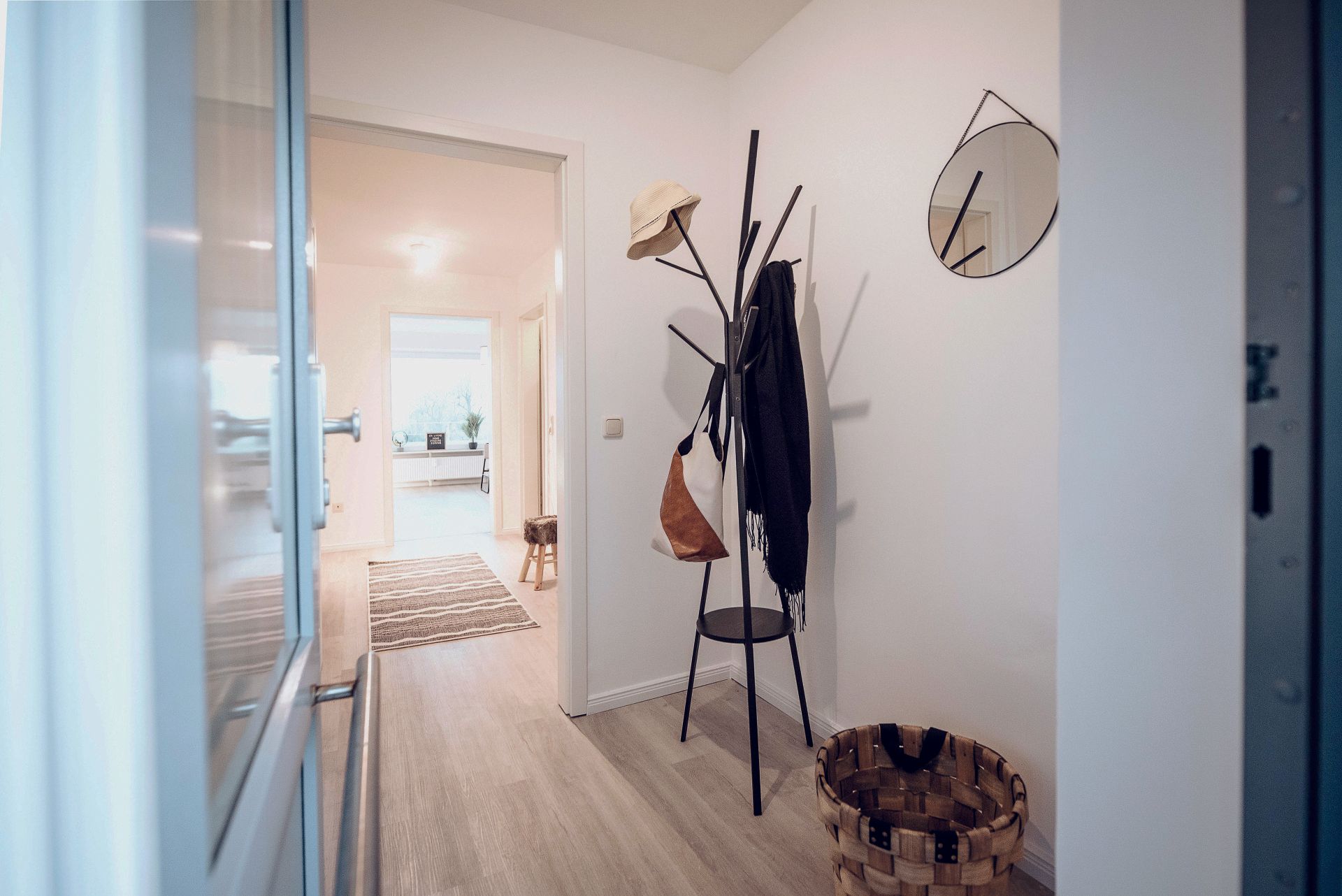 Über den zentral angeordneten Flur erreichen Sie sämtliche Räume. Ein schönes Detail ist die offen gestaltete Wohnküche.