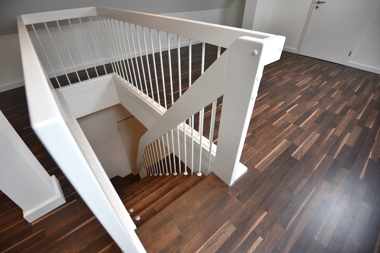 Die Treppe in das 5. Obergeschoss wurde im Rahmen der Modernisierung durch eine maßangefertigte Massivholztreppe ersetzt. Die Fenster und die Fassade zur Straßenseite wurden 2017/2018 erneuert.