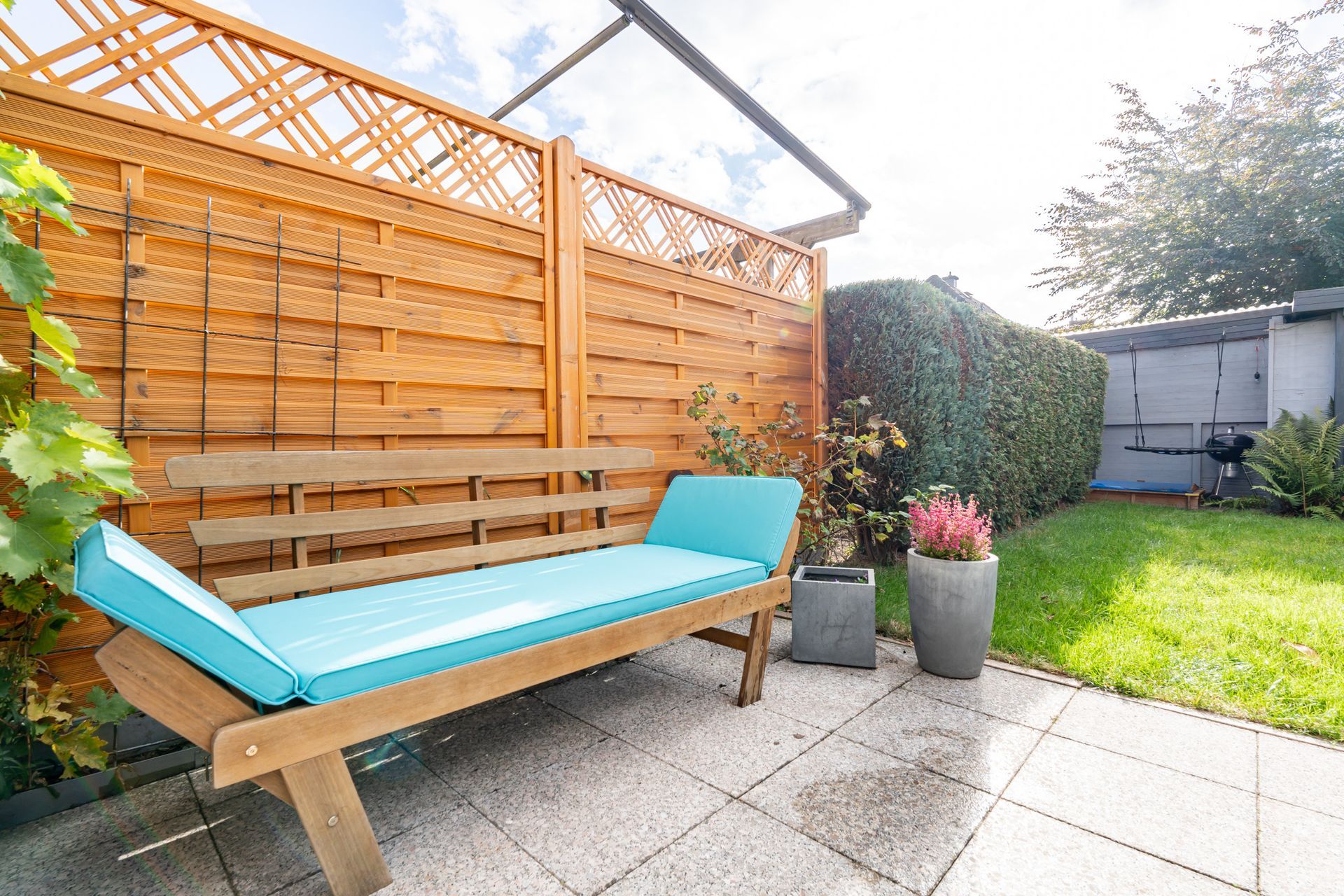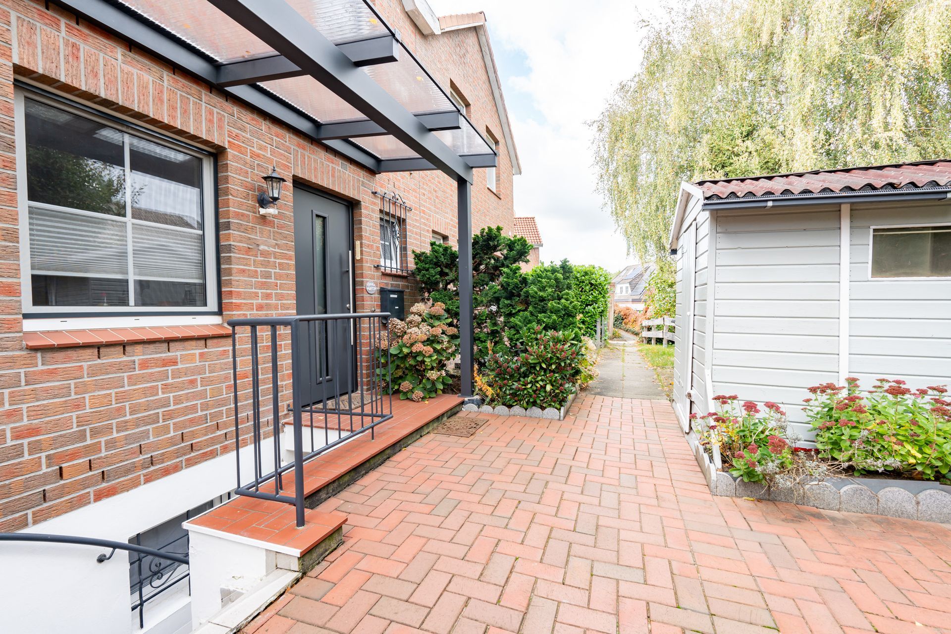 Das straßenseitig nicht einsehbare Grundstück bietet Privatsphäre und ist mit einer gepflegten Rasenfläche sowie einer Terrasse ausgestattet. Ein Carport sorgt für komfortables Parken direkt am Haus.