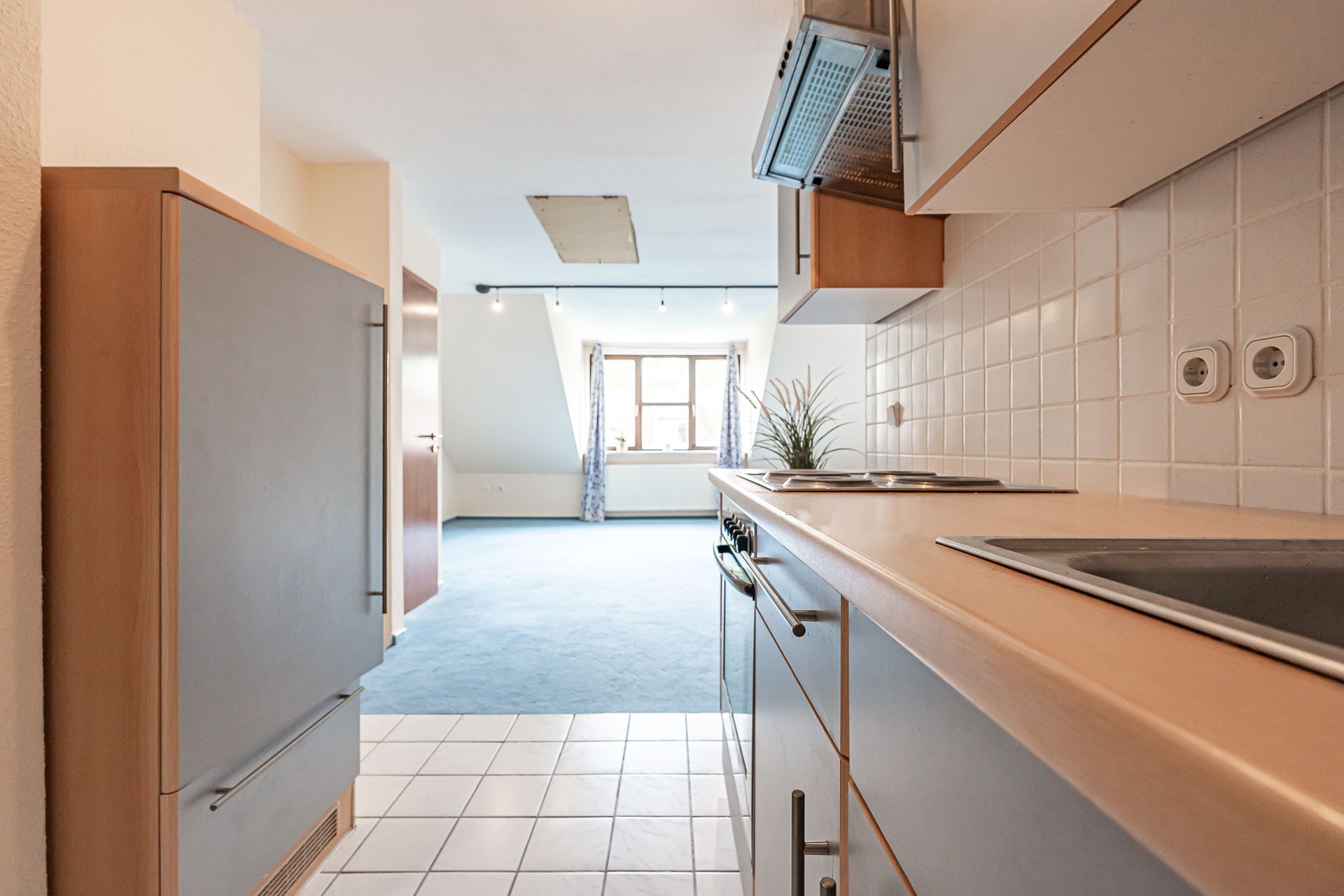 Der ausgebaute Spitzboden, erreichbar über eine weitere Holztreppe, bietet einen großen, offenen Bereich mit Pantryküche und Gaube. Ein helles Duschbad auf dieser Ebene ermöglicht eine komfortable Nutzung als zusätzliches Gästezimmer. Bei dem Spitzboden handelt es sich um eine sogenannte Nutzfläche, die Fläche ist in der Berechnung der Wohnfläche nicht berücksichtigt worden.