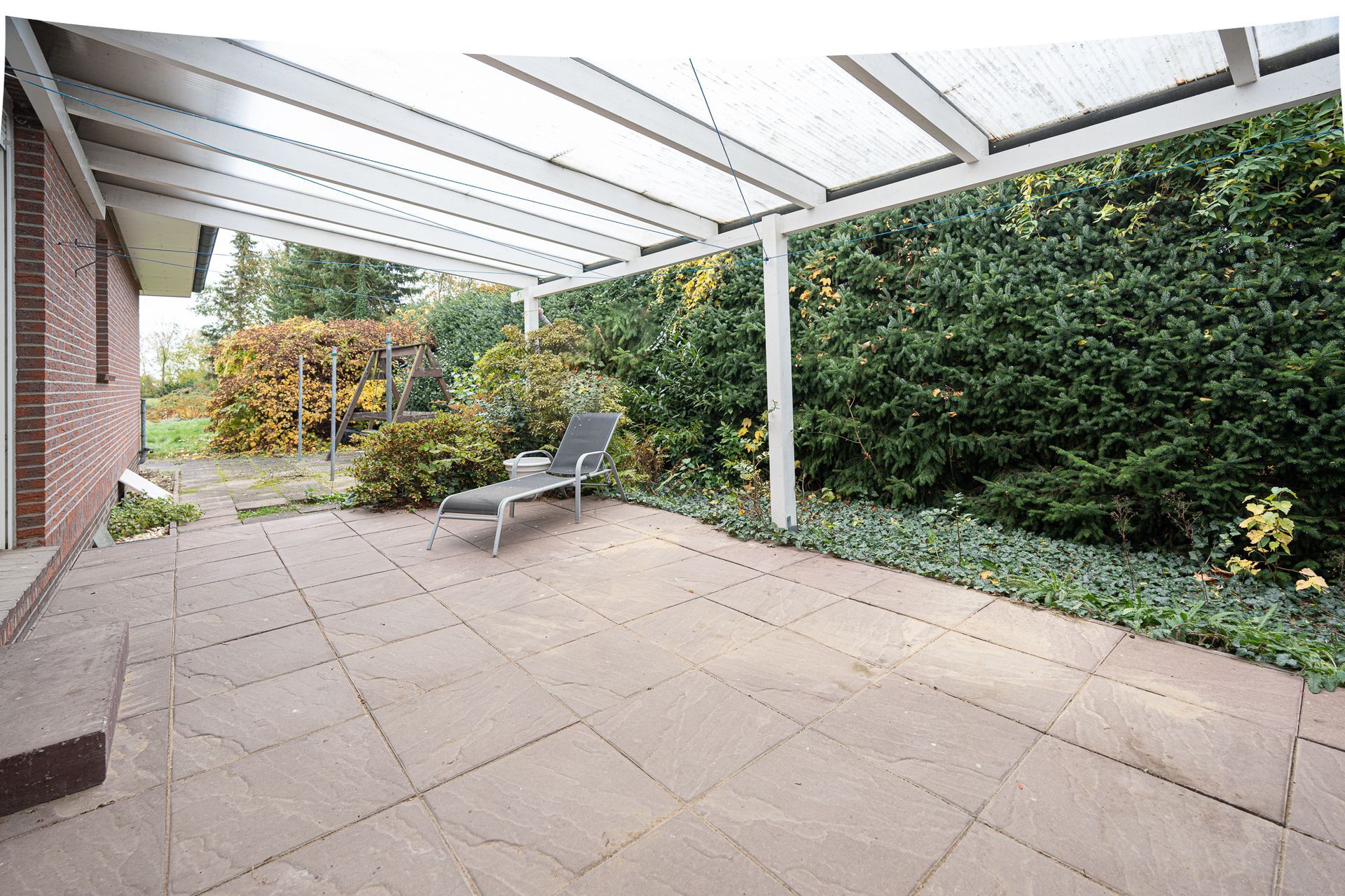 Auf dem Grundstück befinden sich eine große überdachte Terrasse, massive Garage, ein Gewächshaus sowie ein Fischteich.