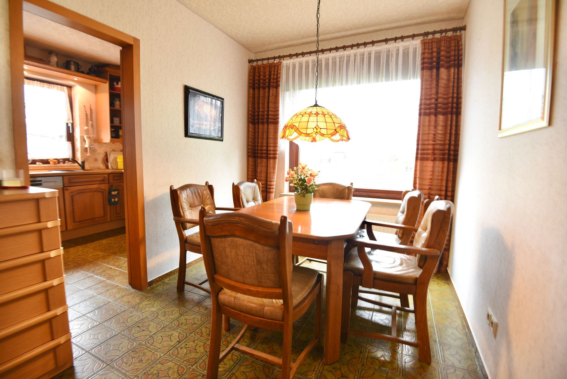 Es gibt eine große Wohn-/Essdiele, die sich direkt vor der Küche befindet. Die Einbauküche ist aus Massivholz und wurde mit hochwertigen Elektrogeräten modernisiert.