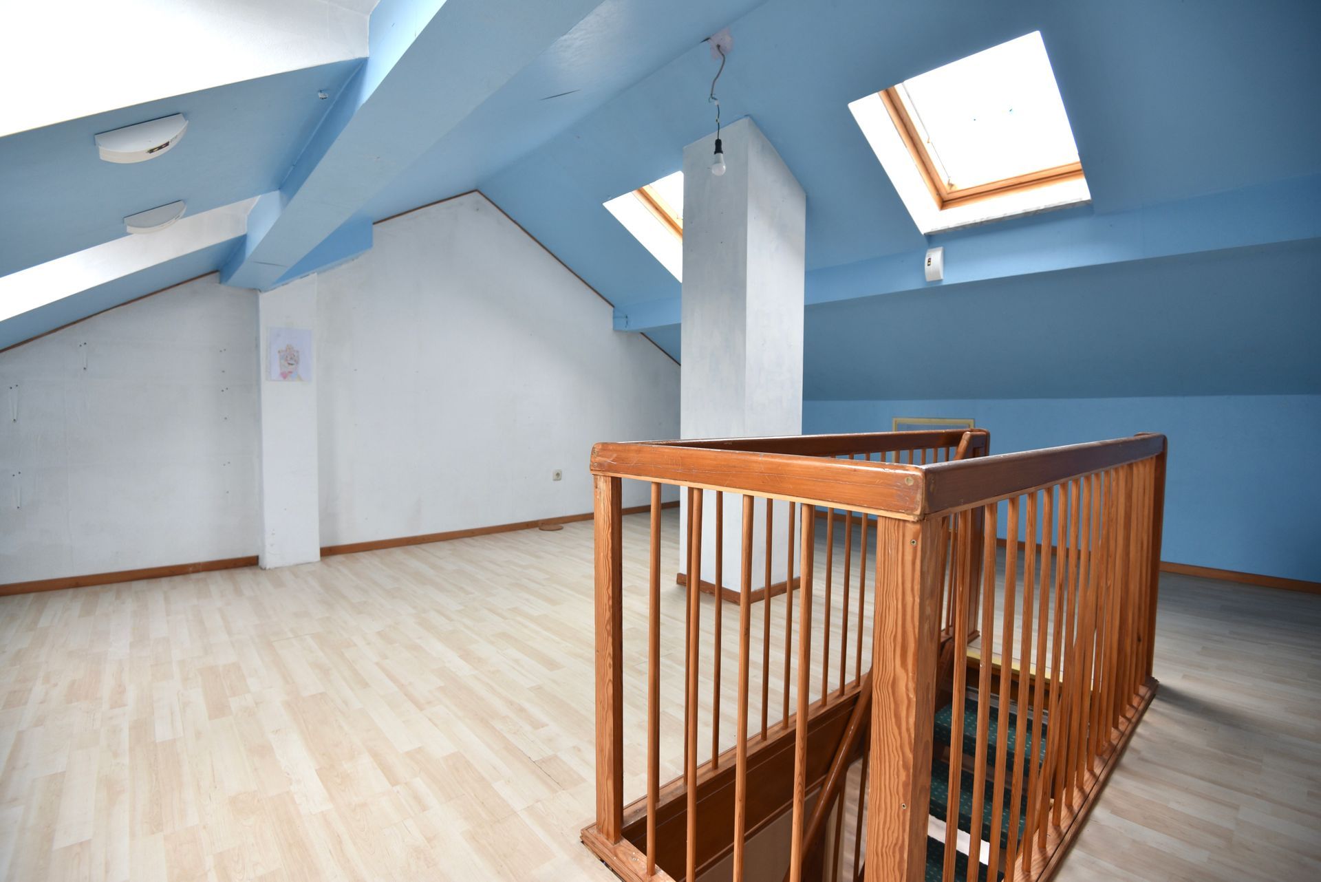 Über eine schöne Holztreppe gelangen Sie in das Obergeschoss mit einem großen Kinderzimmer, ein gut geschnittenes Schlafzimmer und ein helles Wannenbad. Die Zimmer sind mit Laminatfußboden ausgestattet.