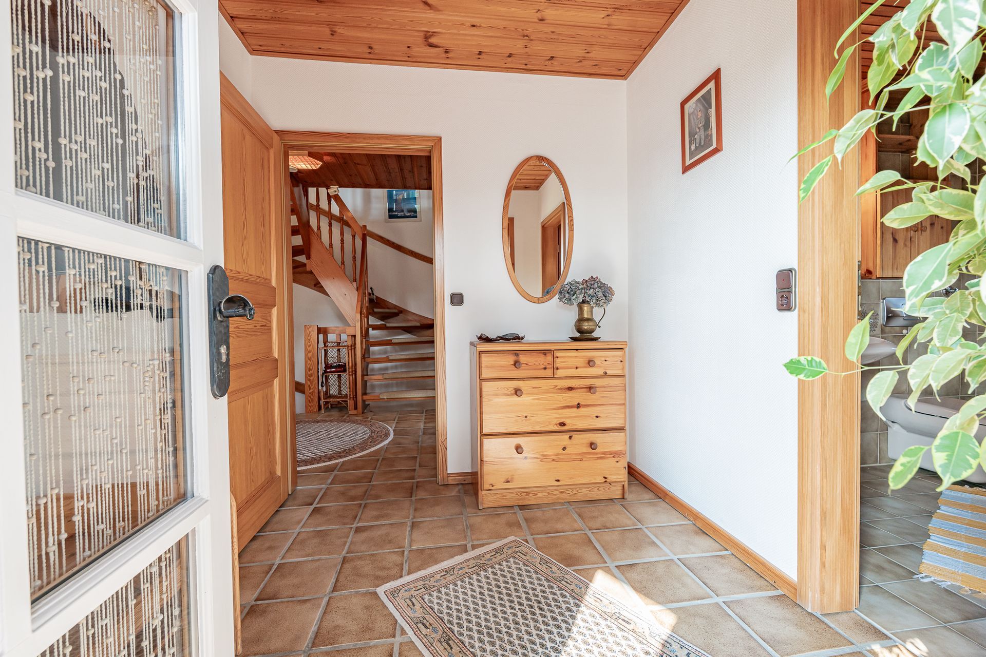 Der helle Eingangsbereich empfängt Sie mit einer großen Diele. Das Erdgeschoss bietet ein gepflegtes Gästebad mit Dusche, eine großzügige Küche mit Sitzmöglichkeit und hochwertigen Elektrogeräten sowie ein großes Wohnzimmer mit einem gemauerten Kamin. Dieser Kamin kann, nach Installation eines Filters, auch weiterhin betrieben werden.