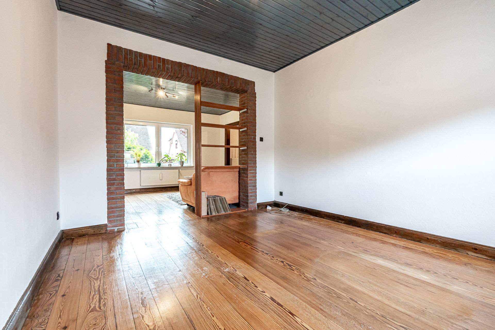 Beim Betreten des Hauses empfängt Sie eine Diele mit historischen Eichen-Innentüren und praktischen Einbauschränken. Das Wohn- und Esszimmer überzeugt mit einem Pitchpinefußboden und einer guten Deckenhöhe, die dem Raum ein angenehmes Wohngefühl verleiht.