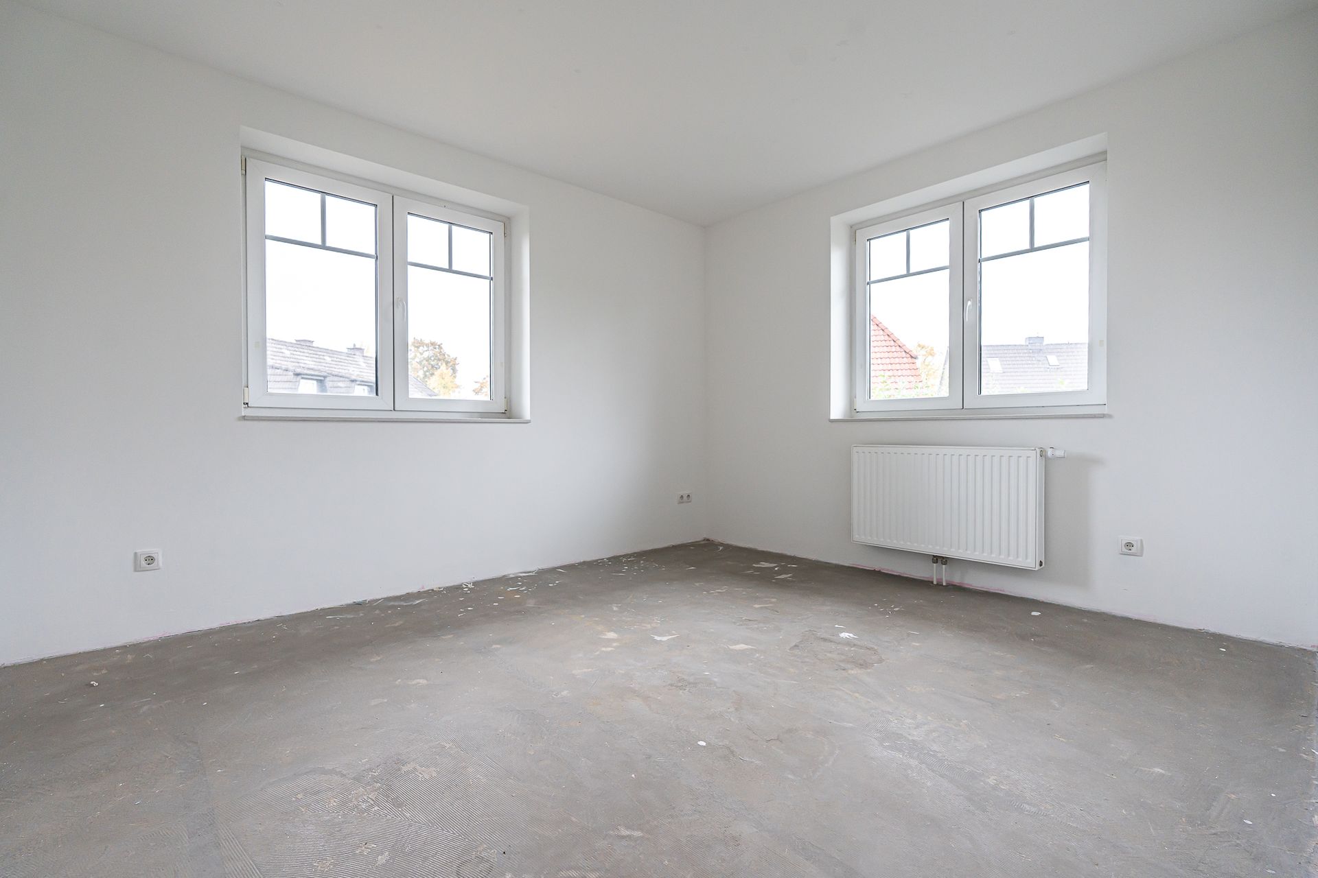 Im Erdgeschoss befinden sich ein einladender Eingangsbereich mit Gäste-WC, ein großzügiger Hauswirtschaftsraum mit Waschmaschinenanschluss und direktem Zugang in den Garten sowie der offen gestaltete Wohn-, Ess- und Küchenbereich.
